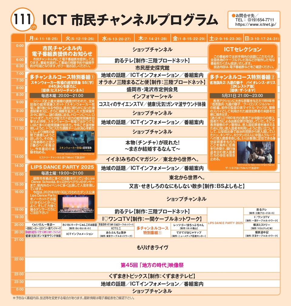 2026年5月 市民チャンネル(111ch)プログラム